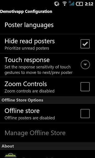 Offline store: To read demotivational posters even when Internet connection is unavailable. Just fill up the offline store beforehand to enjoy posters wherever you are without requiring a 3G connection.