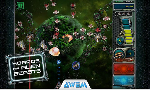 Blast through 8 huge missions is the most exciting space shooter game. Missiles are just light fun for kids, but here you'll get mines, lasers, nuclear bombs, piranha, parasitron, lightning, insulator, infector, ball lightning and homing lasers!