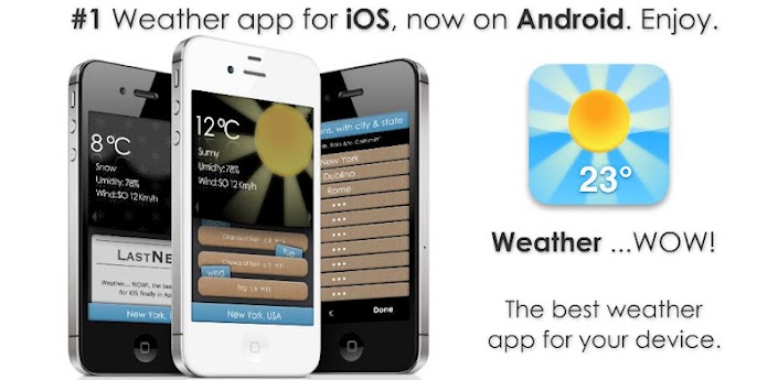 "Weather ...WOW!" has an original and tidy interface! Easy and intuitive, the app gives you updated weather forecast through special animations! The whole GUI is animated and watching it is fun!